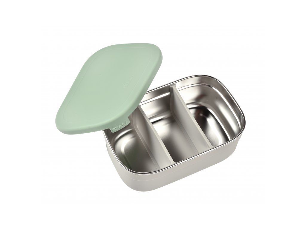 Nerezová oceľ je zdravý a odolný materiál, ktorý je ideálny na ukladanie potravín, nedochádza k prenosu chuti, zápachu ani k zafarbeniu uloženými potravinami. Vďaka svojej nízkej hmotnosti je ideálny na použitie v škole aj na výletoch.