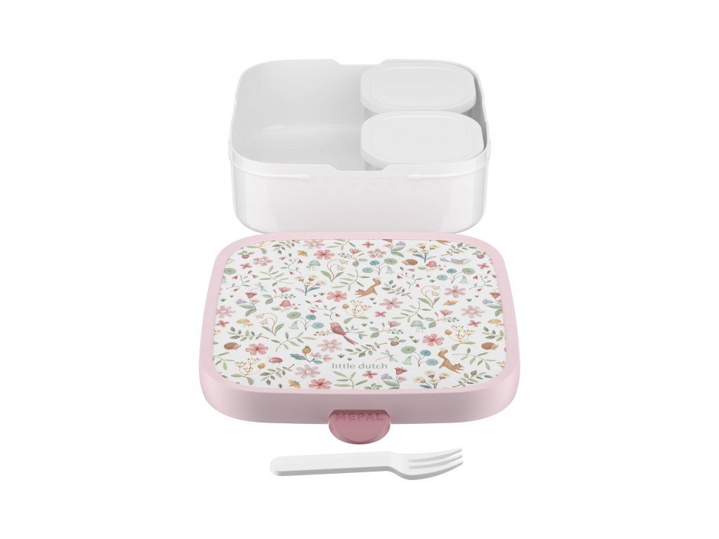 Veľký desiatový box má vo vnútri dve vyberateľné krabičky s viečkom na oddelenie jednotlivých častí uloženej desiaty. Súčasťou boxu je aj malá vidlička, ktorá je ideálna na napichovanie kúskov ovocia či zeleniny. Zacvakávací uzáver je zárukou bezpečného uzavretia obsahu boxu.