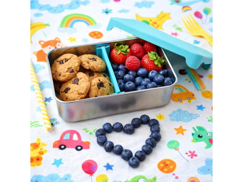 Nerezový Bento box 740 ml so silikónovým viečkom - modrý