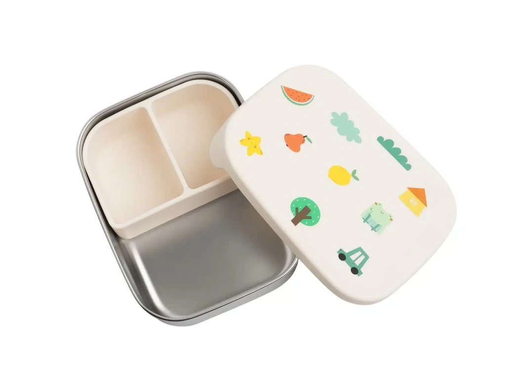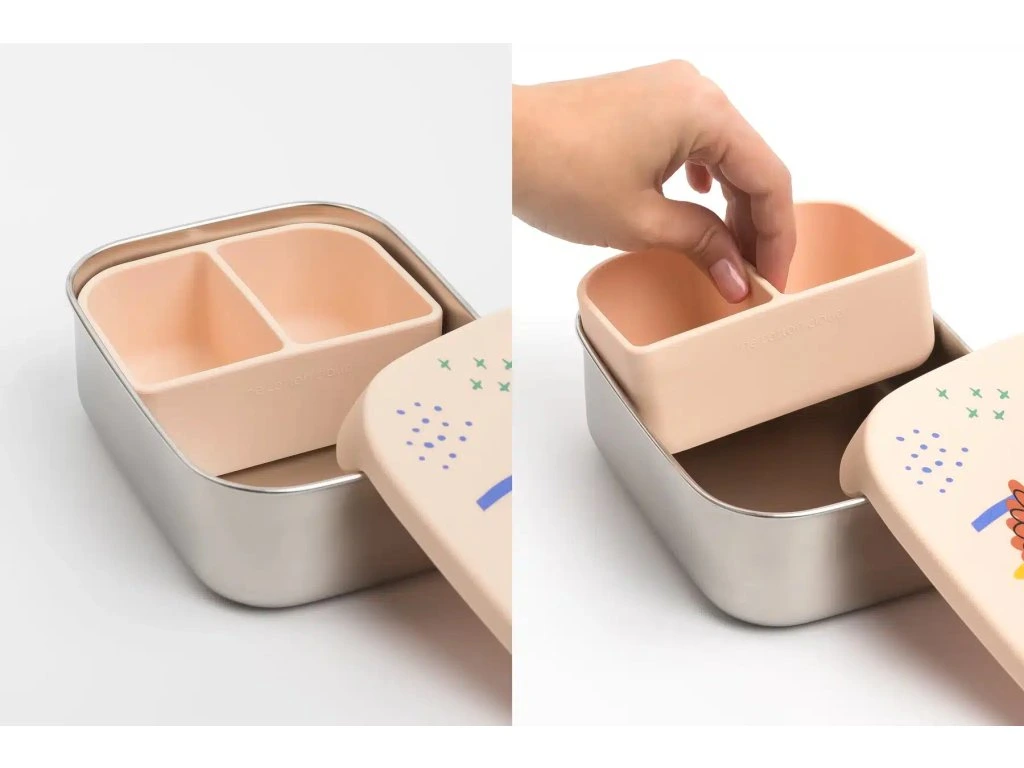 Tento vysokokvalitný obedár kombinuje výhody silikónu s certifikáciou LFGB a robustnej nehrdzavejúcej ocele 304, aby poskytoval odolné a bezpečné riešenie pre skladovanie jedál pre deti. Novo vylepšená verzia obsahuje odnímateľné priehradky, ktoré umožňujú maximálnu flexibilitu a všestrannosť. Sú vyrobené z vysoko kvalitnej nehrdzavejúcej ocele 304 a silikónu LFGB, čo z nich robí bezpečnú a udržateľnú alternatívu k plastu. Ideálne do škôlky, na obedy v škole, na pikniky a dokonca aj na skladovanie potravín. Tieto obedové boxy sú mimoriadne odolné a ideálne na nosenie so sebou. Kvalitná nehrdzavejúca oceľ nehrdzavie a silikónové veko sa nekriví a nepraská.- Tri priehradky na oddelené skladovanie potravín