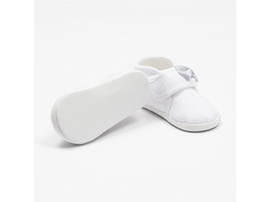 Dojčenské capačky New Baby pre bábätká. Krásne topánočky s moderným vzhľadom na suchý zips. Topánočky priliehajú k nožičke a majú široké vnútro, čo umožňuje voľný pohyb prstov a svalov. Výrobok nie je určený na chôdzu. Sú veľmi ľahké s tenkou syntetickou podrážkou. Zloženie: tkanina typu ľan:100% polyester. Podrážka: syntetický materiál PVC bez BPA. Dĺžka vnútornej stielky 11 cm. Určené pre deti 3-6 mesiacov. Dodávané v praktickej krabičke. Upozornenie: pod textilnou vložkou sa niekedy nachádza papierová vložka, ktorá drží tvar capačky. Pred prvým použitím odstráňte túto papierovú vložku.Dodatočné parametre