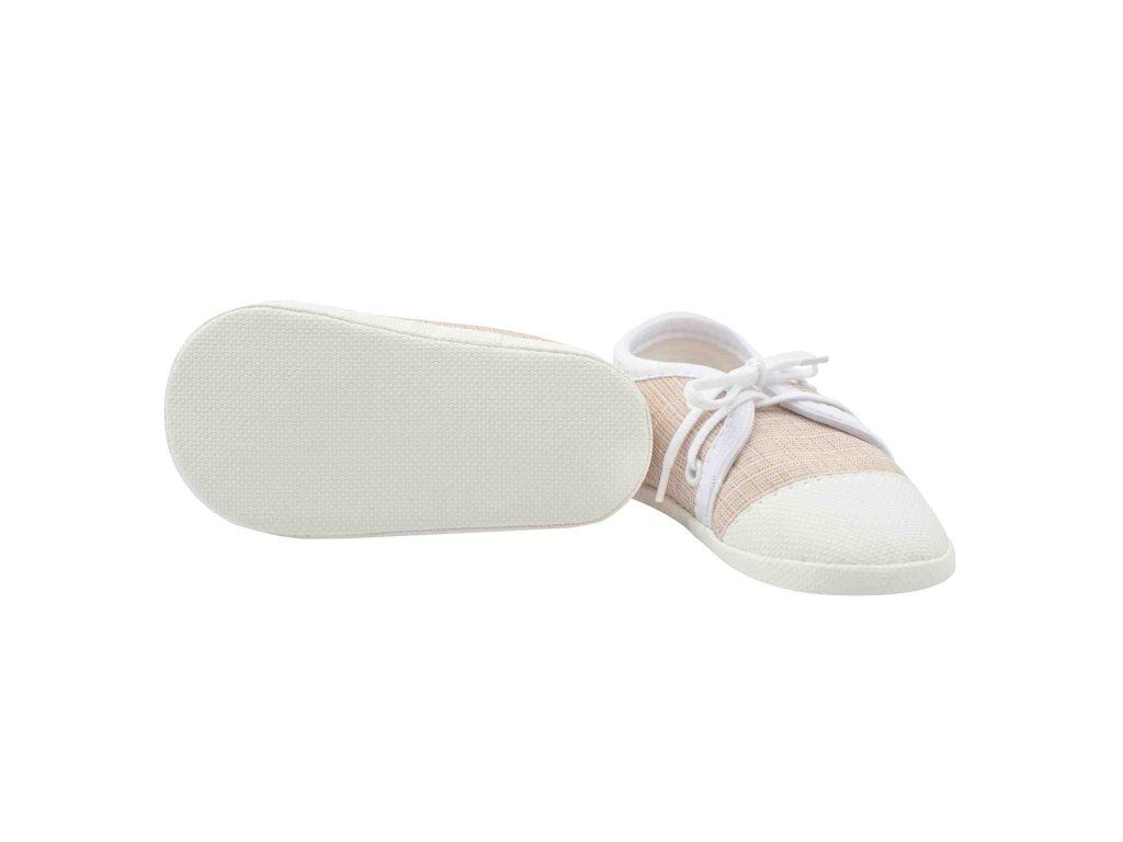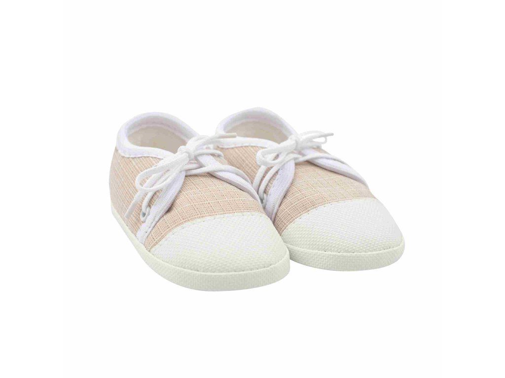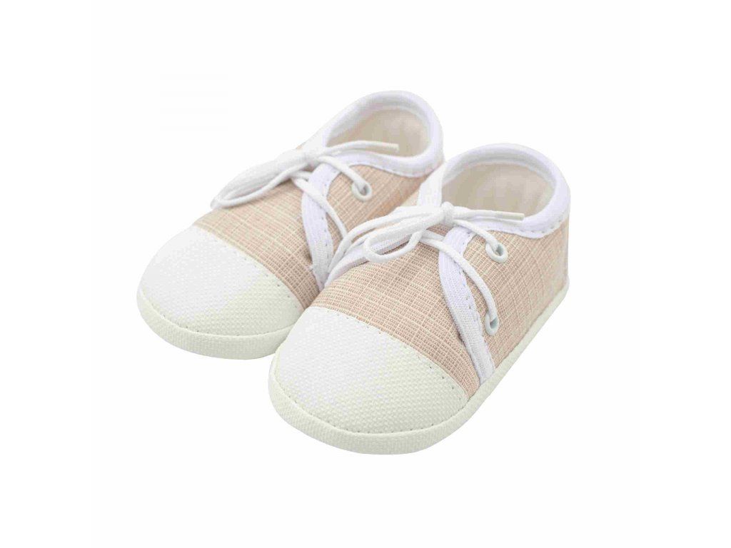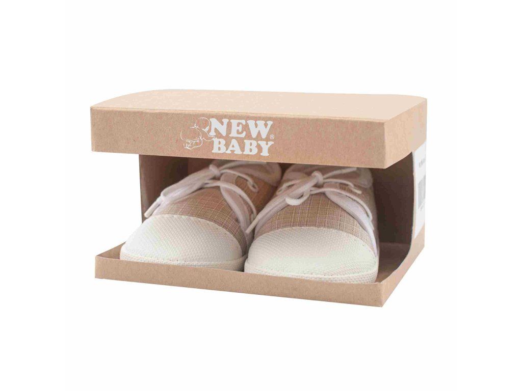 Dojčenské capačky New Baby pre bábätká. Krásne topánočky sú v štýle tenisiek s moderným vzhľadom na zaviazovanie na šnúrku. Topánočky priliehajú k nožičke a majú široké vnútro, čo umožňuje voľný pohyb prstov a svalov. Výrobok nie je určený na chôdzu. Sú veľmi ľahké s tenkou syntetickou podrážkou. Zloženie: 80% bavlna, 20% polyester. Podrážka: syntetický materiál. Dĺžka vnútornej stielky 10 cm. Určené pre deti 0-3 mesiacov. Vhodné pre chlapčekov i dievčatká. Dodávané v praktickej EKO krabičke. Upozornenie: pod textilnou vložkou sa nachádza papierová vložka, ktorá drží tvar capačky. Pred prvým použitím odstráňte túto papierovú vložku.Dodatočné parametre