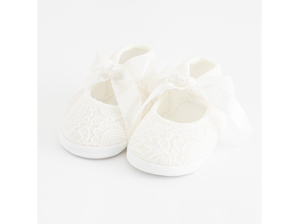 Dojčenské capačky New Baby pre bábätká. Krásne topánočky sú v štýle dievčenských sandálok s moderným vzhľadom na zaviazovanie. Topánočky priliehajú k nožičke a majú široké vnútro, čo umožňuje voľný pohyb prstov a svalov. Výrobok nie je určený na chôdzu. Sú veľmi ľahké s tenkou syntetickou podrážkou. Zloženie: krajka-100% polyester. Podrážka: syntetický materiál PVC bez BPA. Dĺžka vnútornej stielky 10 cm. Určené pre deti 0-3 mesiacov. Dodávané v praktickej krabičke. Upozornenie: pod textilnou vložkou sa niekedy nachádza papierová vložka, ktorá drží tvar capačky. Pred prvým použitím odstráňte túto papierovú vložku.Dodatočné parametre