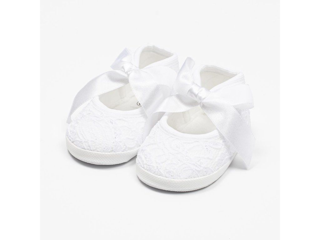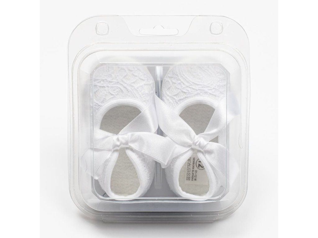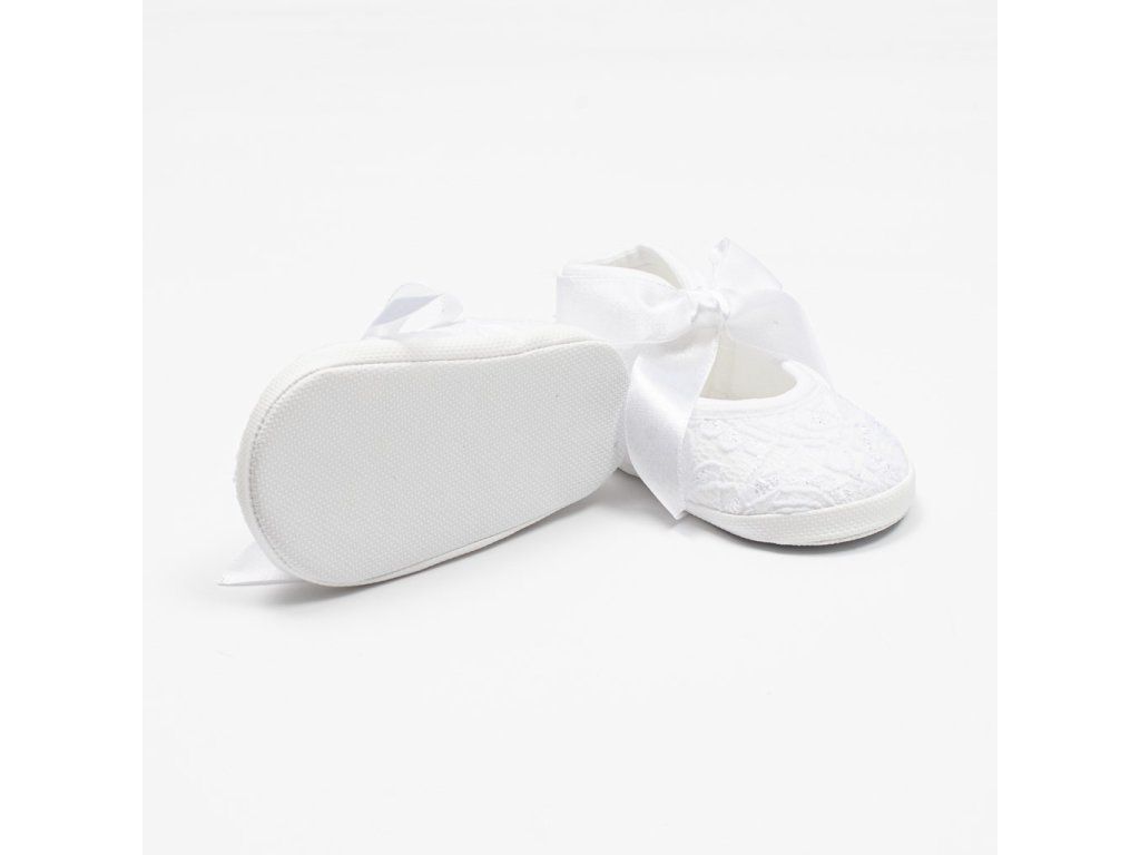 Dojčenské capačky New Baby pre bábätká. Krásne topánočky sú v štýle dievčenských sandálok s moderným vzhľadom na zaviazovanie. Topánočky priliehajú k nožičke a majú široké vnútro, čo umožňuje voľný pohyb prstov a svalov. Výrobok nie je určený na chôdzu. Sú veľmi ľahké s tenkou syntetickou podrážkou. Zloženie: krajka-100% polyester. Podrážka: syntetický materiál PVC bez BPA. Dĺžka vnútornej stielky 13 cm. Určené pre deti 12-18 mesiacov. Dodávané v praktickej krabičke. Upozornenie: pod textilnou vložkou sa niekedy nachádza papierová vložka, ktorá drží tvar capačky. Pred prvým použitím odstráňte túto papierovú vložku.Dodatočné parametre