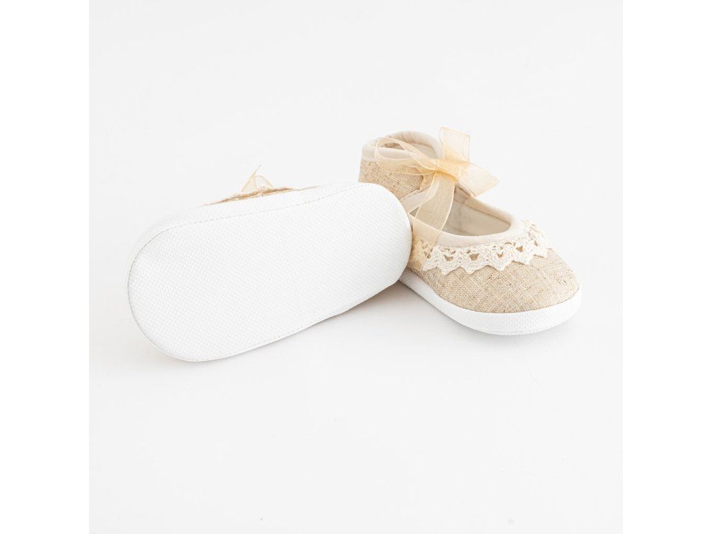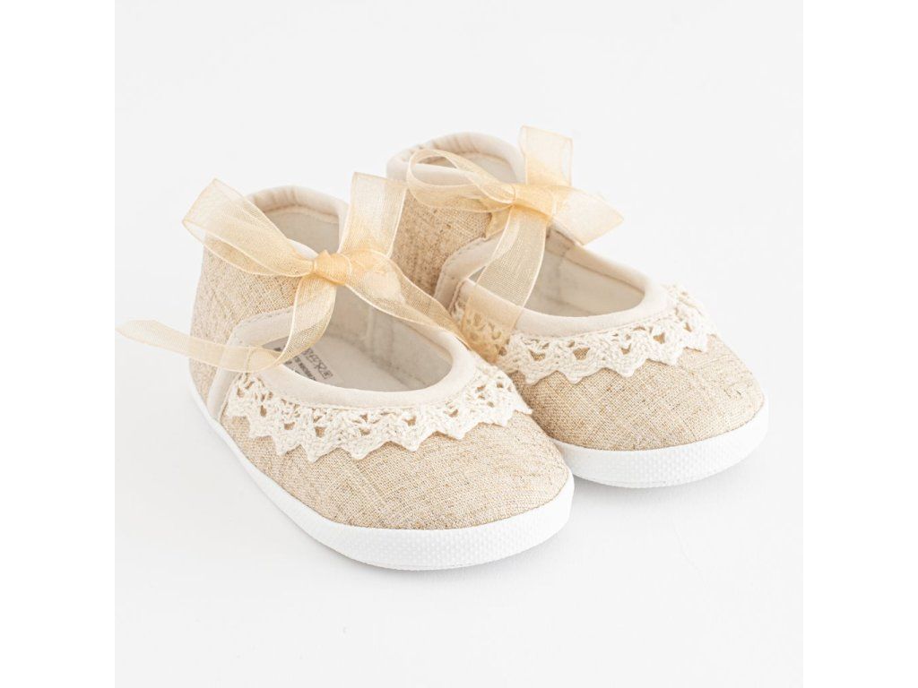 Dojčenské capačky New Baby pre bábätká. Krásne topánočky sú v štýle dievčenských sandálok s moderným vzhľadom na zaviazovanie. Topánočky priliehajú k nožičke a majú široké vnútro, čo umožňuje voľný pohyb prstov a svalov. Výrobok nie je určený na chôdzu. Sú veľmi ľahké s tenkou syntetickou podrážkou. Zloženie: krajka-100% polyester. Podrážka: syntetický materiál PVC bez BPA. Dĺžka vnútornej stielky 12 cm. Určené pre deti 6-12 mesiacov. Dodávané v praktickej krabičke. Upozornenie: pod textilnou vložkou sa niekedy nachádza papierová vložka, ktorá drží tvar capačky. Pred prvým použitím odstráňte túto papierovú vložku.Dodatočné parametre