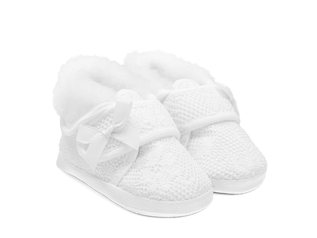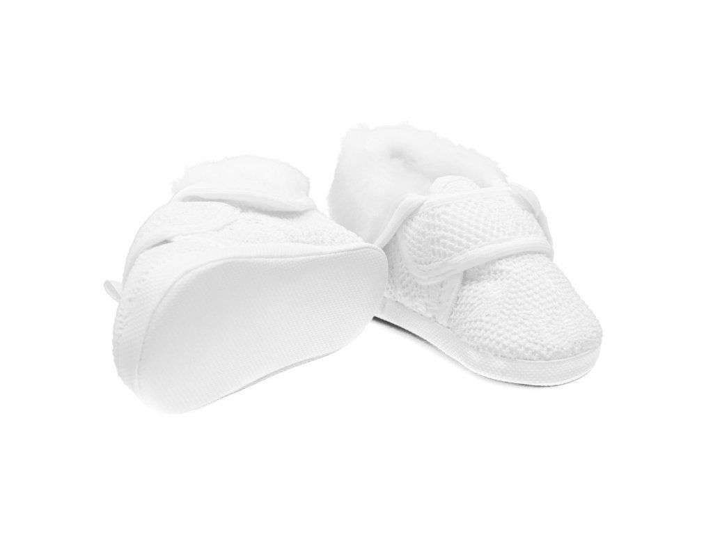 Dojčenské zimné capačky New Baby pre bábätká. Krásne, teplé krajkové topánočky na suchý zips. Vnútorná časť je vystlaná rúnovou pleteninou-100% polyester. Topánočky priliehajú k nožičke a majú široké vnútro, čo umožňuje voľný pohyb prstov a svalov. Výrobok nie je určený na chôdzu. Sú veľmi ľahké s tenkou syntetickou podrážkou. Zloženie: 100% polyester, rúnová pletenina-100% polyester. Podrážka: syntetický materiál PVC bez BPA. Dĺžka vnútornej stielky 10 cm. Určené pre deti 0-3 mesiacov. Dodávané v praktickej krabičke. Upozornenie: pod textilnou vložkou sa niekedy nachádza papierová vložka, ktorá drží tvar capačky. Pred prvým použitím odstráňte túto papierovú vložku.Dodatočné parametre