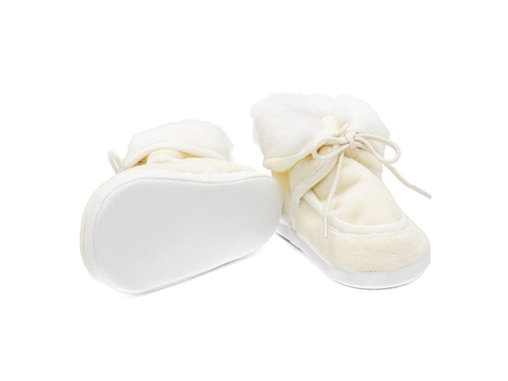 Dojčenské zimné capačky New Baby pre bábätká. Krásne, teplé semiškové topánočky sú v štýle tenisiek s moderným vzhľadom na zaviazovanie na šnúrku. Vnútorná časť je vystlaná rúnovou pleteninou-100% polyester. Topánočky priliehajú k nožičke a majú široké vnútro, čo umožňuje voľný pohyb prstov a svalov. Výrobok nie je určený na chôdzu. Sú veľmi ľahké s tenkou syntetickou podrážkou. Zloženie: 80% bavlna, 20% polyester, rúnová pletenina-100% polyester. Podrážka: syntetický materiál PVC bez BPA. Dĺžka vnútornej stielky 12,5 cm. Určené pre deti 12-18 mesiacov. Dodávané v praktickej krabičke. Upozornenie: pod textilnou vložkou sa niekedy nachádza papierová vložka, ktorá drží tvar capačky. Pred prvým použitím odstráňte túto papierovú vložku.Dodatočné parametre