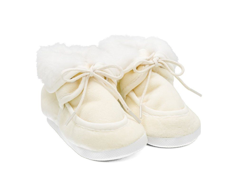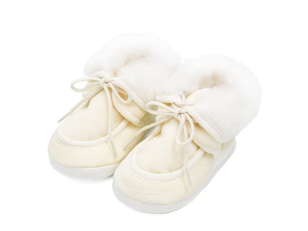 Dojčenské zimné capačky New Baby pre bábätká. Krásne, teplé semiškové topánočky sú v štýle tenisiek s moderným vzhľadom na zaviazovanie na šnúrku. Vnútorná časť je vystlaná rúnovou pleteninou-100% polyester. Topánočky priliehajú k nožičke a majú široké vnútro, čo umožňuje voľný pohyb prstov a svalov. Výrobok nie je určený na chôdzu. Sú veľmi ľahké s tenkou syntetickou podrážkou. Zloženie: 80% bavlna, 20% polyester, rúnová pletenina-100% polyester. Podrážka: syntetický materiál PVC bez BPA. Dĺžka vnútornej stielky 12 cm. Určené pre deti 6-12 mesiacov. Dodávané v praktickej krabičke. Upozornenie: pod textilnou vložkou sa niekedy nachádza papierová vložka, ktorá drží tvar capačky. Pred prvým použitím odstráňte túto papierovú vložku.Dodatočné parametre