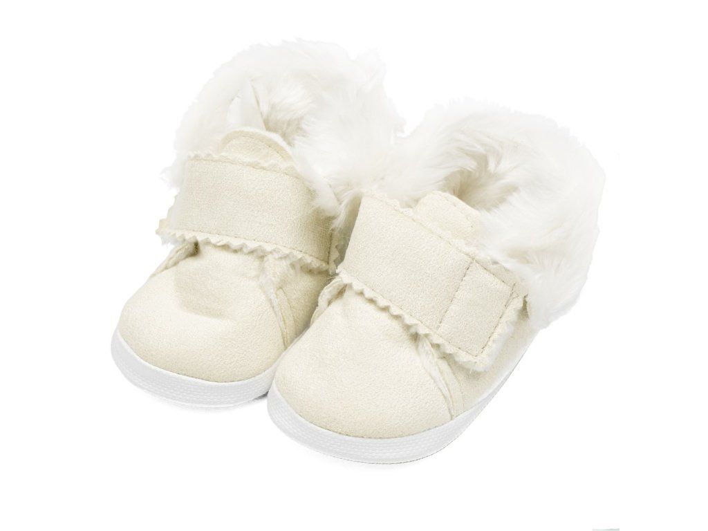 Dojčenské zimné capačky New Baby pre bábätká. Krásne, teplé semiškové topánočky s moderným vzhľadom a zapínaním na suchý zips. Vnútorná časť je vystlaná rúnovou pleteninou-100% polyester. Topánočky priliehajú k nožičke a majú široké vnútro, čo umožňuje voľný pohyb prstov a svalov. Výrobok nie je určený na chôdzu. Sú veľmi ľahké s tenkou syntetickou podrážkou. Zloženie: ekologický semiš - 100% polyester, rúnová pletenina-100% polyester. Podrážka: syntetický materiál PVC bez BPA. Dĺžka vnútornej stielky 12,5 cm. Určené pre deti 12-18 mesiacov. Pred prvým použitím odstráňte túto papierovú vložku.Dodatočné parametre