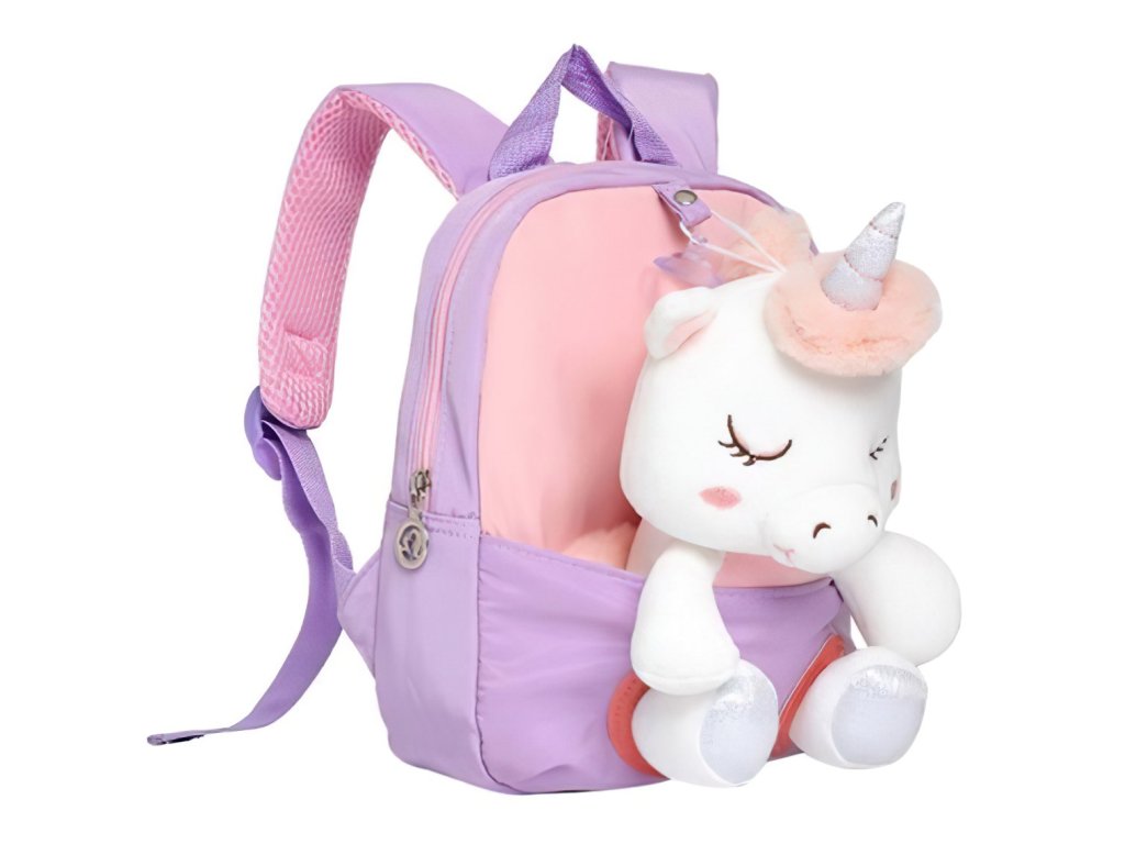 Detský batoh s plyšákom Jednorožec fialový