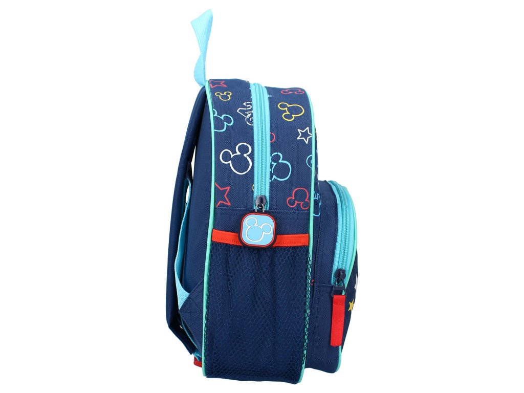 Krásny detský plecniak v modrom prevedení s motívom veselého Mickeyho Mouse. Nádherné farby, pevné a kvalitné prevedenie, ľahké zapínanie, to je to, čo ocenia nielen deti, ale aj rodičia. Vhodný na výlety aj do škôlky. Batoh je vybavený väčším a menším úložným vreckom a na boku po oboch stranách obsahuje vrecká na fľašu s pitím.