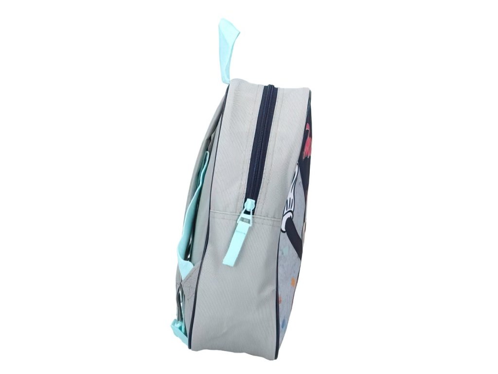 Pre maximálny komfort sú ramenné popruhy nastaviteľné a polstrované, čo umožňuje prispôsobenie batohu rôznym detským postavám. Zadná časť batohu je ľahko spevnená, aby lepšie držal tvar a poskytoval pohodlie pri nosení. Horné pútko je ideálne na zavesenie na háčik alebo na jednoduché prenášanie v ruke.