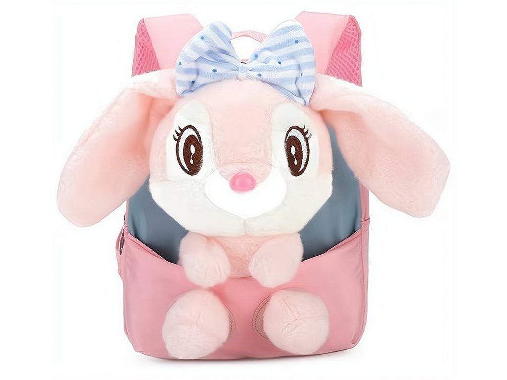 Veselý detský batoh v ružovom prevedení s odnímateľnou plyšovou hračkou. Nádherné farby, pevné a kvalitné prevedenie, ľahké zapínanie, to je to, čo ocenia nielen deti, ale aj rodičia. Vhodný na výlety aj do škôlky. Vhodný pre deti od 2 rokov. Batoh má mierne spevnený chrbát a jednu priehradku uzatvárateľnú na zips.