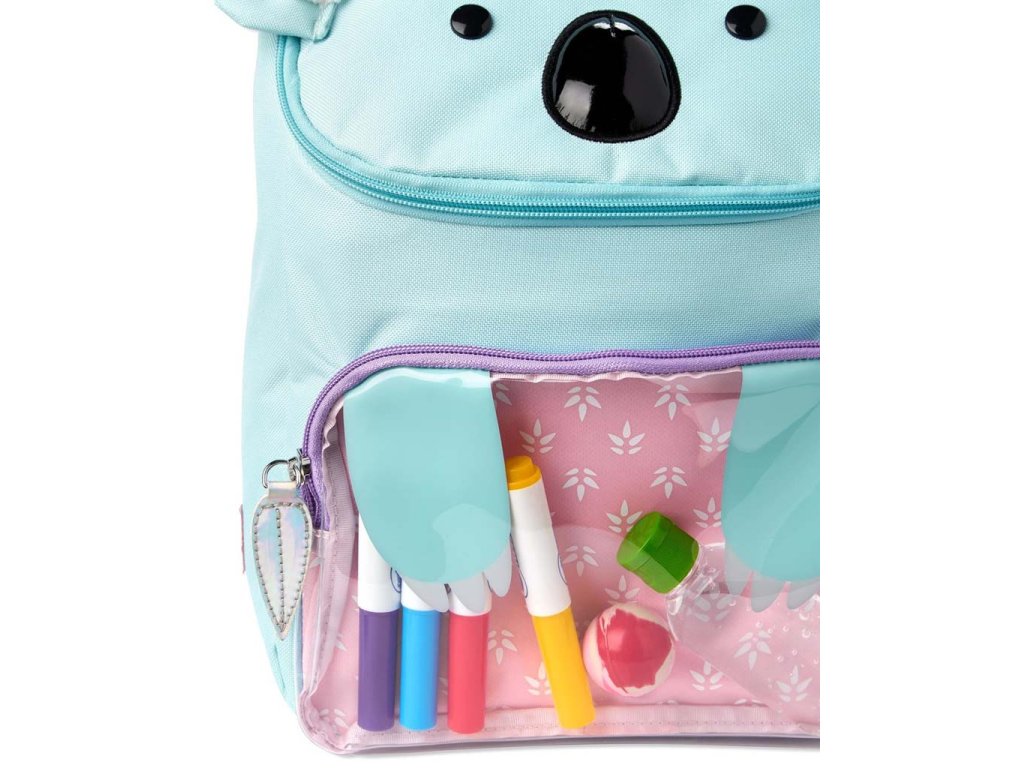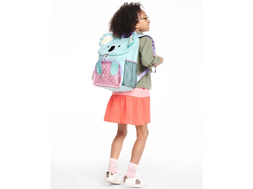 Krásny batoh s motívom Koaly. Veľkosť presne pre školské učebnice a zošity, písacie potreby, tašku na desiatu a iné pomôcky. Roztomilý batoh pre veľké deti sa hodí na všetko potrebné, čo vaše dieťa potrebuje v triede i mimo nej. Vďaka širokému a ľahko prístupnému otvoru a priehľadnému prednému vrecku je možné zabaliť a mať na dosah potrebné veci, zatiaľ čo sieťované vrecko na fľašu zabezpečí, aby boli nápoje po ruke.Vlastnosti: