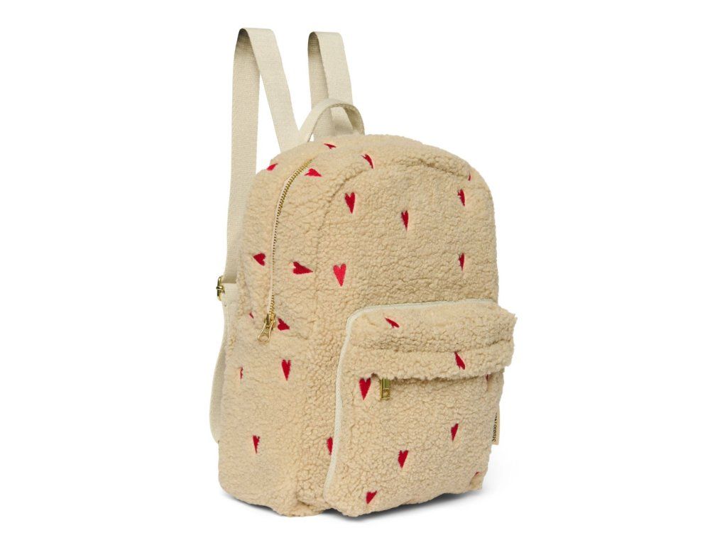STUDIO NOOS - Teddy Midi BACKPACK - batôžtek s predným vreckom | Ecru Hearts