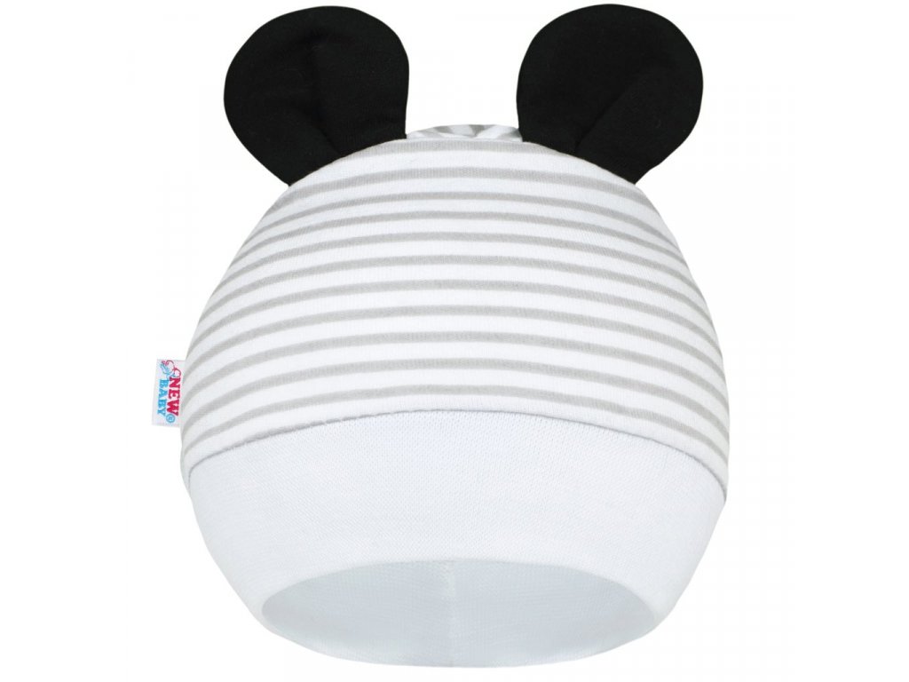 Bavlnená dojčenská čiapočka New Baby Panda pre bábätká. Čiapočka je prúžkovaná a má roztomilé ušká. Má široký lem. Čiapočka s moderným dizajnom je vhodná pre dievčatká i chlapčekov. Zloženie: 100% bavlna.Dodatočné parametre