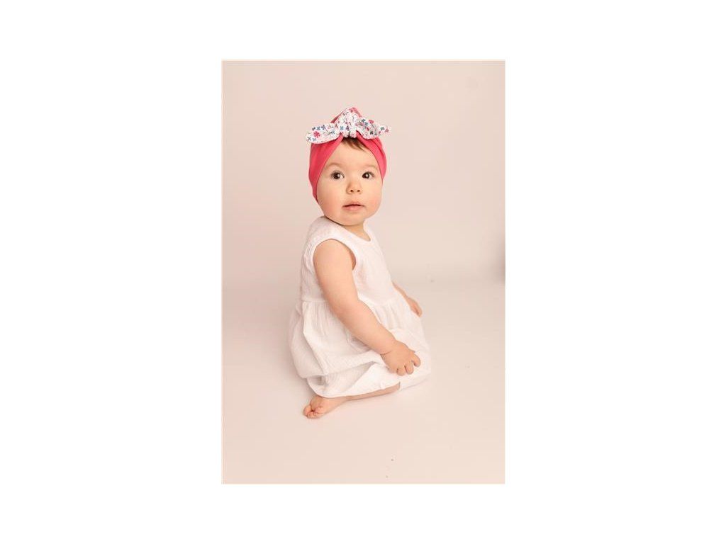 Čiapočka New Baby For Girls je ušitá v štýle turbanu. Skvelá vychytávka, ktorú možno využiť ako krásny doplnok, alebo ako praktický kúsok oblečenia. Turban zdobí krásny kvetinový vzor a štýlový uzol, ktorý dodá čiapočke ten správny šmrnc. Ušitá z dvojitej látky a tým sú viac chránené ušká pred vetrom. Príjemná na dotyk a krásne sedí na hlavičke. Materiál: 100% bavlna.Dodatočné parametre