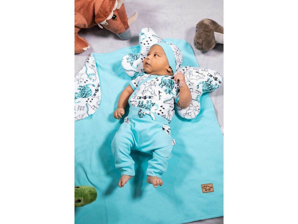 Krásna bavlnená dojčenská čiapočka-šatka Nicol Dinosaur. Čiapočka je ušitá v štýle šatky s pružným lemom s potlačou dinosaurov. Vďaka príjemnému a kvalitnému materiálu sa bábätko bude cítiť veľmi príjemne a pohodlne. Zloženie: 100% bavlna.Dodatočné parametre