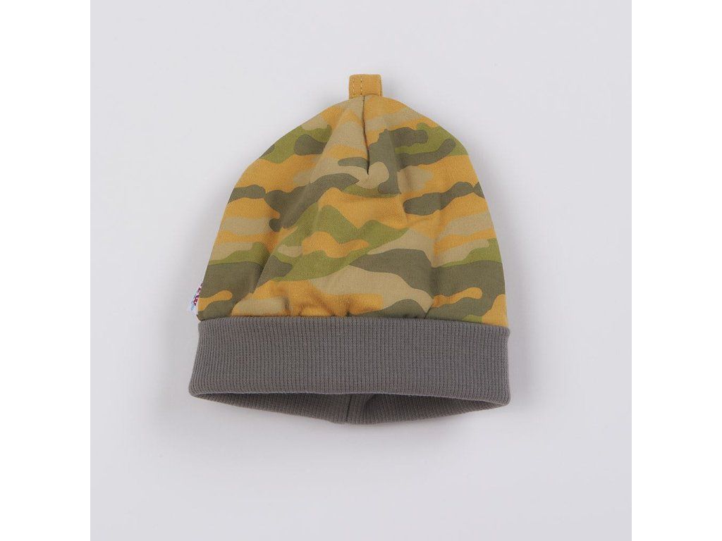 Štýlová bavlnená kojenecká čiapočka New Baby With Love pre bábätká. Čiapočka je vhodná pre bábätká už od narodenia. Je celopotlačená moderným maskáčovým vzorom a má širší lem, ktorý netlačí na hlavičku bábätka. Zloženie: 100% bavlna.Dodatočné parametre