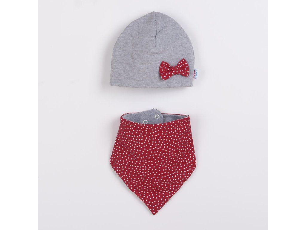 Dojčenská čiapočka s šatkou na krk New Baby Missy sivo-červená, 68 (4-6m) - 44113