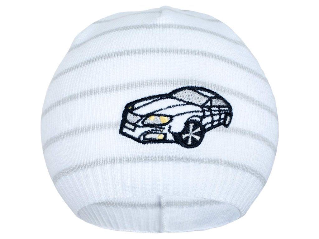 Jarná čiapočka New Baby s autíčkom bielo-svetlo sivá, 86/92 - 30578