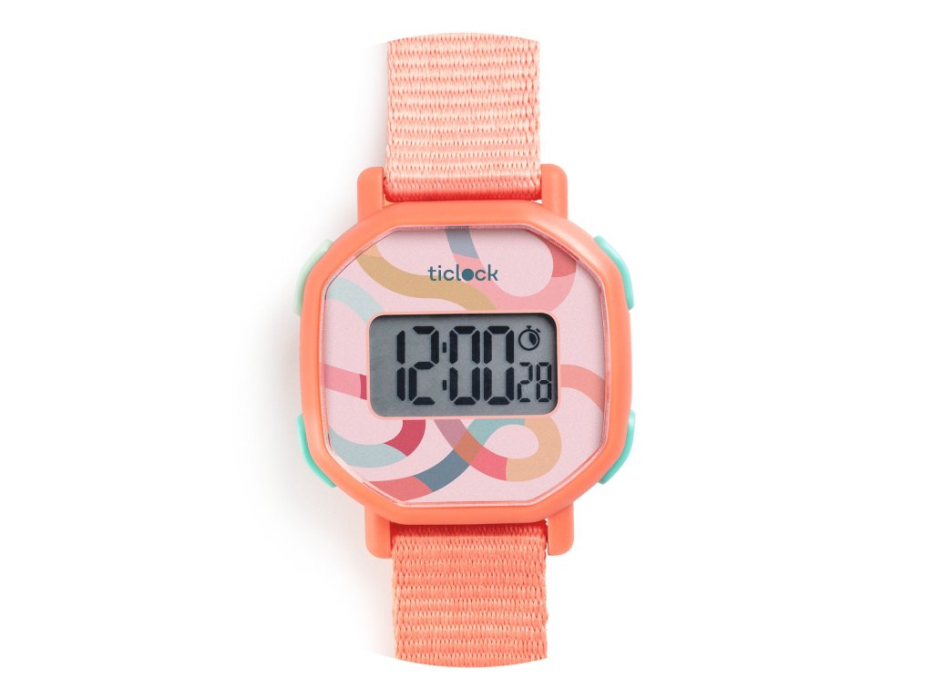 Náramkové digitálne hodinky Ticlock: Pastelová špirálaOdolné detské digitálne hodinky s pastelovým dizajnom, stopkami a podsvietenímHodinky z kolekcie Djeco Ticlock sú ľahké, štýlové a zároveň odolné digitálne hodinky pre deti. Majú osemuholníkové telo (inšpirované prvými japonskými digitálkami), podsvietený displej a sú navrhnuté tak, aby vydržali detské dobrodružstvá. Navyše sú nárazuvzdorné a vodeodolné (5 ATM) – zvládnu sprchu aj plytké plávanie.Prečo si vybrať hodinky Djeco Ticlockvodeodolnosť 5 ATM – sprcha a plytké plávanie (bez potápania)nárazuvzdornéstopky – ideálne na šport a hrypodsvietenie displeja – čas vidno aj v tmepohodlné nosenie – remienok z polyesteru, pracka z pevného plastubatéria už osadená – hodinky sú pripravené hneď na používanieObsah balenia1× náramkové digitálne hodinky s batériounávodDodatočné parametre