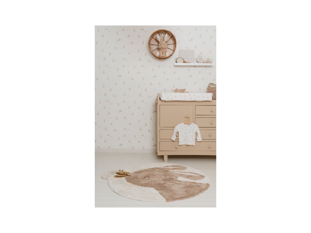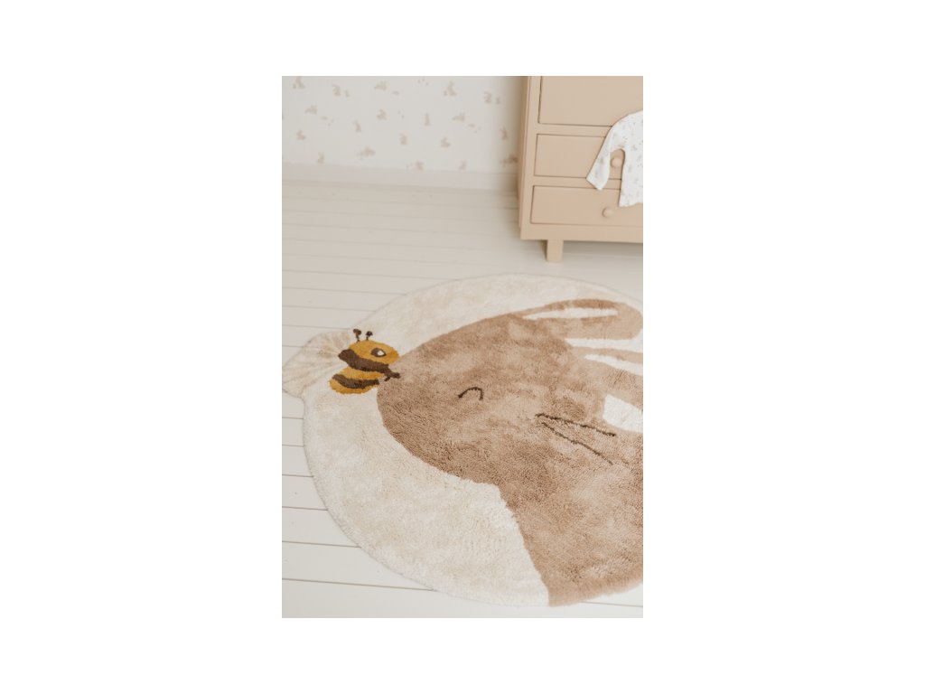 Vytvorte v detskej izbe útulnú atmosféru s koberčekom od značky Little Dutch! Roztomilý koberček v tvare zajačika má neutrálny béžový odtieň a detail v podobe včielky na ňufáku. hrať sa.