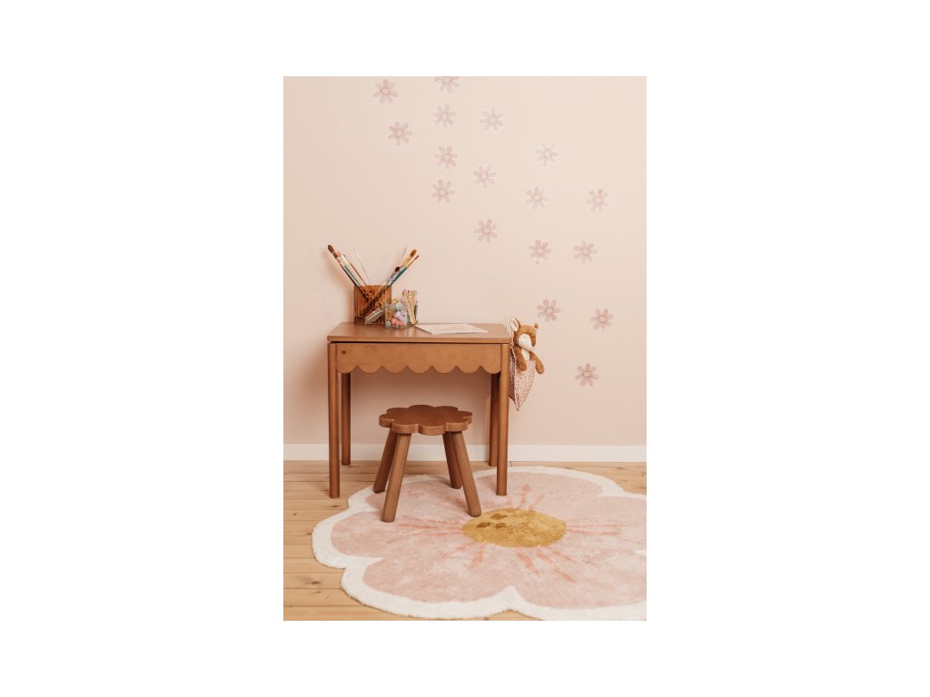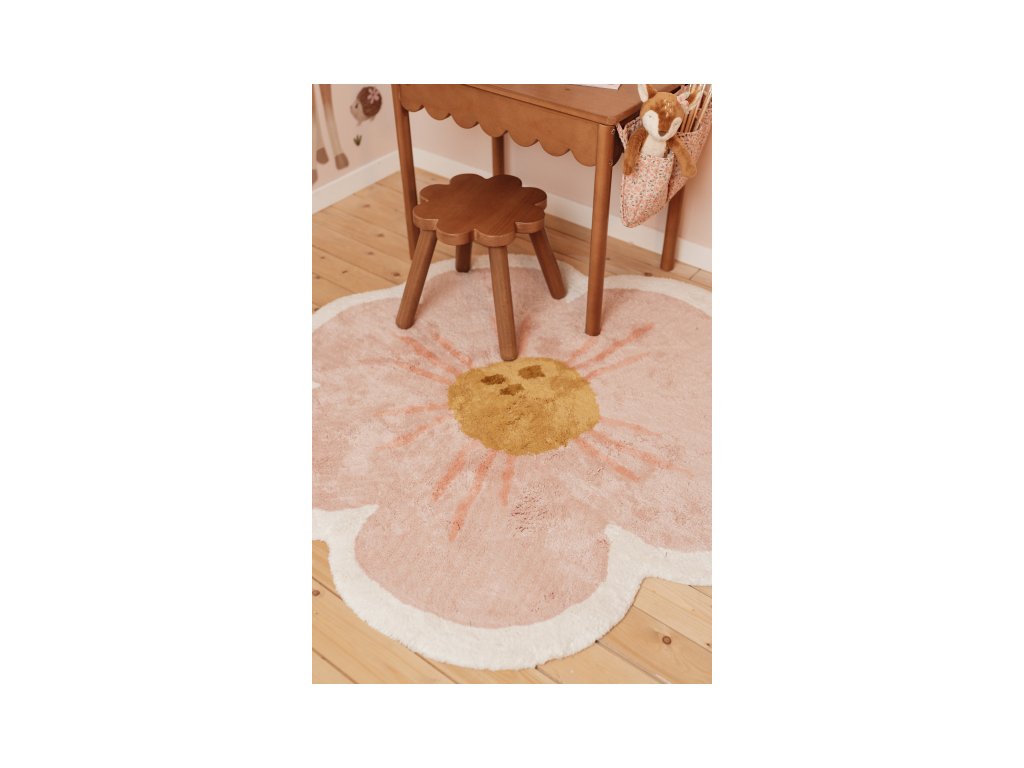 Vytvorte v detskej izbe útulnú atmosféru s koberčekom od značky Little Dutch! Koberec v tvare kvety má jemný béžový okraj s ružovými lístkami a okrovo žltým stredom.Jeho nežný dizajn vnesie do miestnosti príjemnú a útulnú náladu a vášmu dieťaťu sa na ňom bude krásne sedieť a hrať sa.