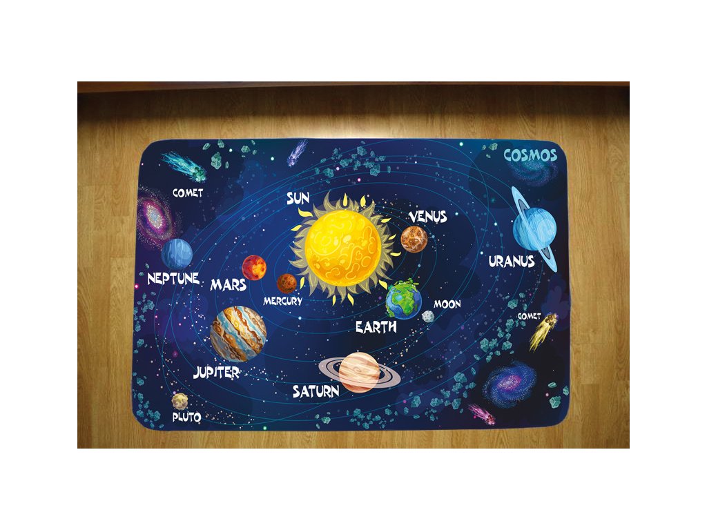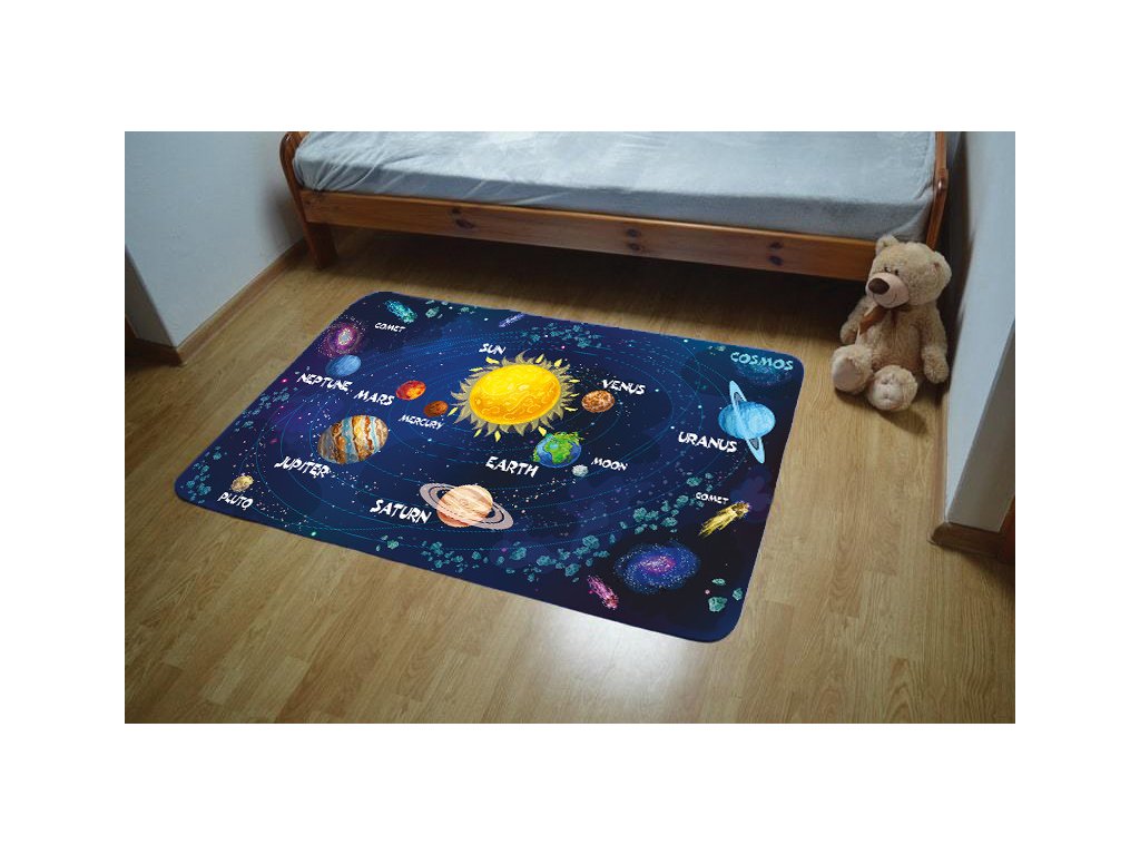 Predstavte si, ako sa vaše dieťa ponára do jeho neuveriteľnej hebkosti, ktorá je priamo stvorená pre citlivú detskú pokožku. Živá a detailná grafika s motívmi Vesmíru – od žiariacich hviezd a komét, cez tajomné hmloviny až po vzdialené planéty – okamžite rozprúdi jeho fantáziu. Či už sa bude hrať s hračkami vesmírnych lodí, objavovať "nové galaxie" s figúrkami, alebo si jednoducho užívať relaxačné chvíle pri pozorovaní "vesmíru", tento koberec mu poskytne dokonalé pozadie. Navyše, jeho vizuálna príťažlivosť z neho robí krásny a náučný dekoračný prvok, ktorý rozžiari každú detskú izbu.
