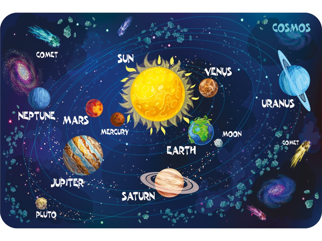 Inšpiratívny motív Vesmíru: Rozvíja fantáziu, podporuje kreatívnu hru a sny o vesmíre. Navyše slúži ako nástroj na poznávanie planét a vesmírnych javov.
