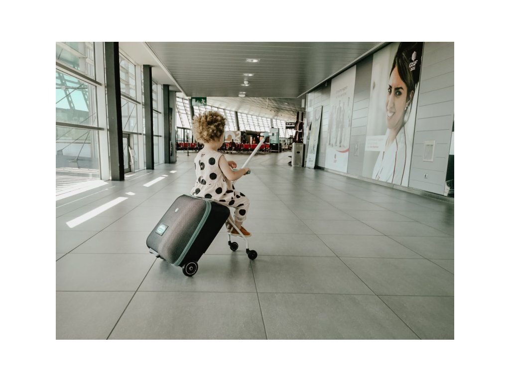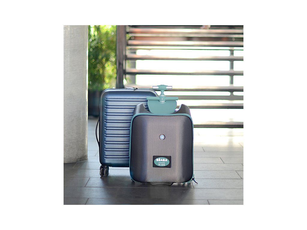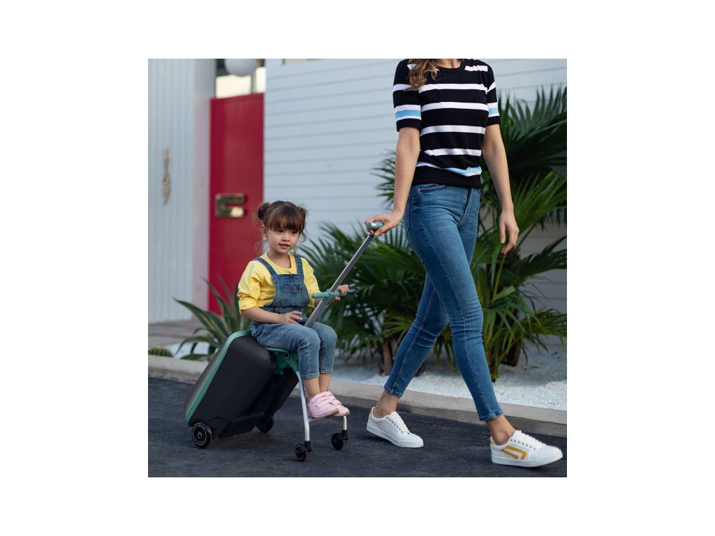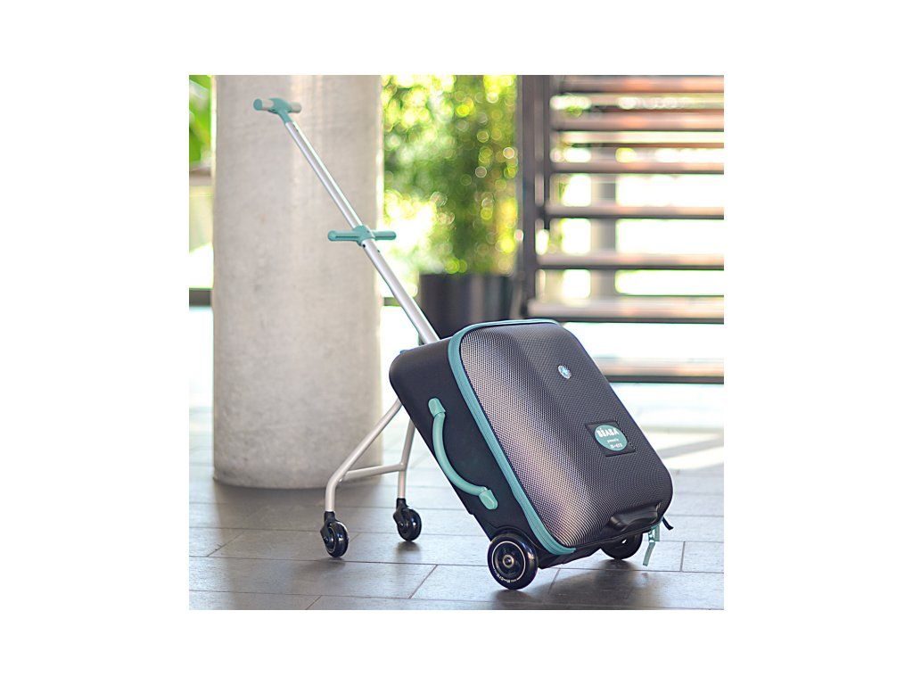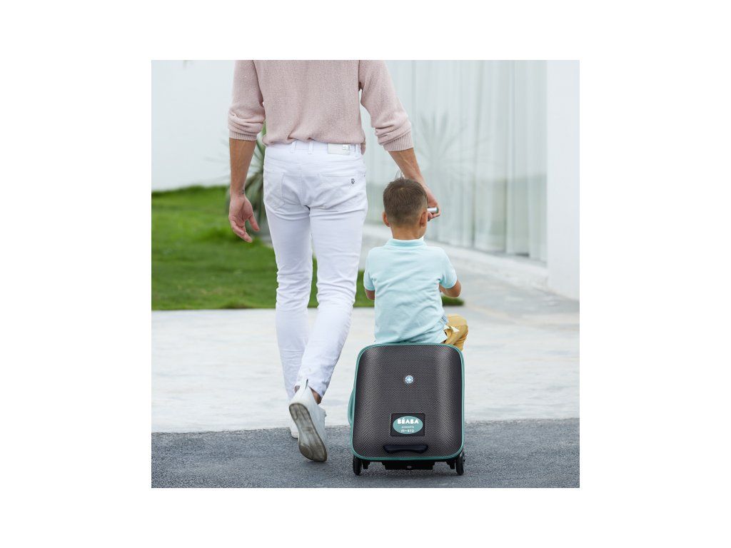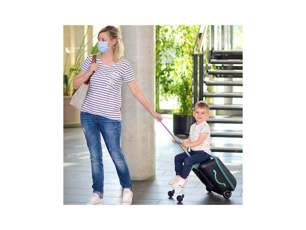 Unikátna kabínová batožina uľahčí a zrýchli vaše cestovanie s malým dieťaťom na letisku, na stanici a pod. Kufor je vybavený sedadlom, na ktorom môžete voziť sediace dieťa. Maximálnu stabilitu pri jazde so sediacim dieťaťom poskytujú vyklápacie oporné nohy s kolieskami. Vyťahovacie držadlo a predné kolieska otočné o 360 ° ponúkajú pohodlné ovládanie kufra.