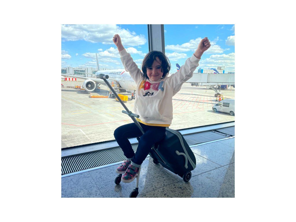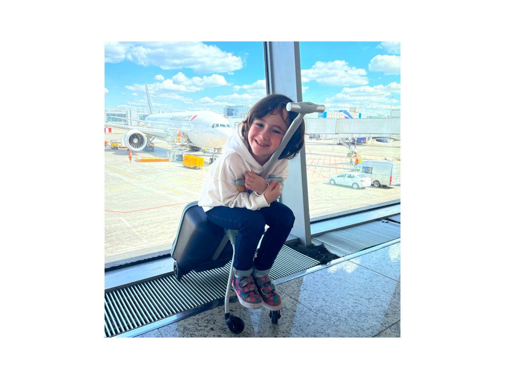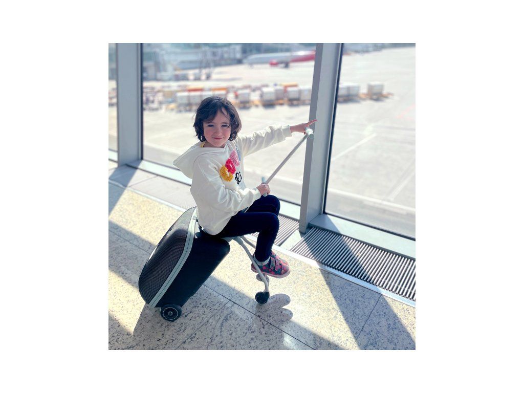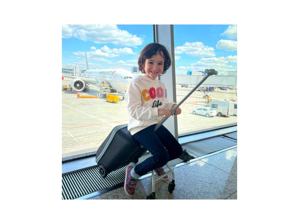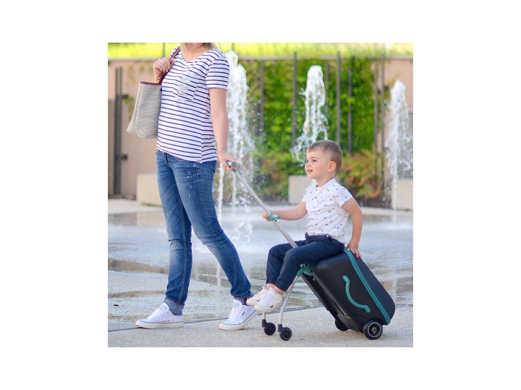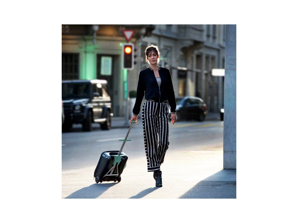 Unikátna kabínová batožina uľahčí a zrýchli vaše cestovanie s malým dieťaťom na letisku, na stanici a pod. Kufor je vybavený sedadlom, na ktorom môžete voziť sediace dieťa. Maximálnu stabilitu pri jazde so sediacim dieťaťom poskytujú vyklápacie oporné nohy s kolieskami. Vyťahovacie držadlo a predné kolieska otočné o 360 ° ponúkajú pohodlné ovládanie kufra.