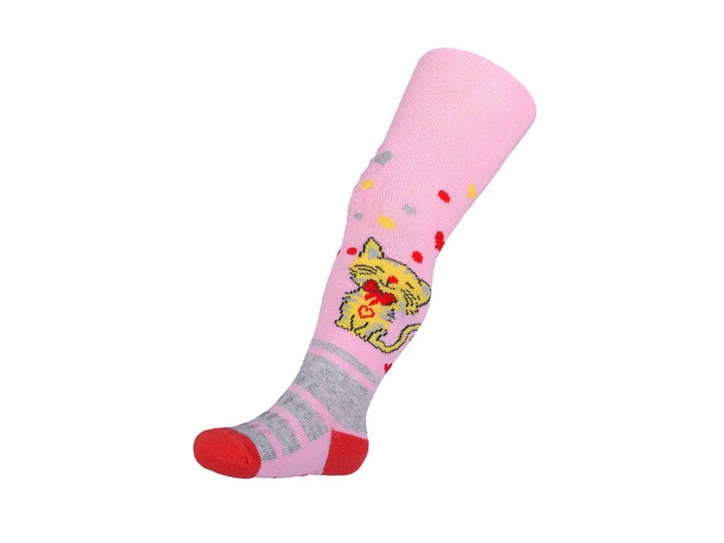 Bavlnené pančucháčky New Baby 3xABS svetlo ružové s mačičkou, 104 (3-4r) - 24049
