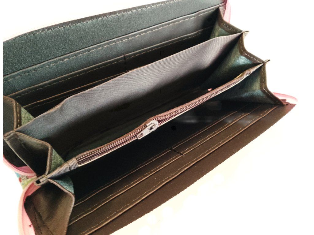Peňaženka je vyrobená z kvalitnej syntetickej kože, ktorá je odolná a zároveň príjemná na dotyk. Vo vnútri nájdete podšívku z pevnej textílie, ktorá chráni obsah pred opotrebovaním. Povrch je ľahko umývateľný a dlhodobo si zachováva svoj sýty farebný vzhľad. Interiér ponúka premyslený úložný priestor – niekoľko priehradiek na karty, dve väčšie priehradky na bankovky a vrecko na zips pre mince. Vďaka zipsovému uzatváraniu po celom obvode zostane všetko bezpečne vo vnútri, nech už peňaženku nosíte v kabelke alebo batohu.