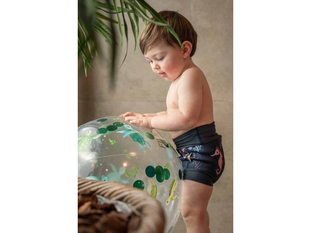 S najroztomilejšími plavkami značky FILIBABBA pre bábätká budú slnečné dni pri bazéne, na pláži alebo v záhrade ešte zábavnejšie! Plavkové nohavičky s fantastickým strihom ponúkajú UV 50+ ochranu, zatiaľ čo neoprén je príjemný na jemnej pokožke dieťaťa a udrží plaveckú plienku na mieste. Plavecké nohavice potešia vašu ratolesť svojimi snovými, ručne kreslenými ilustráciami. Vyberte si medzi čarovnými morskými koníkmi, bublinkovými korytnačkami a lahodnou zmrzlinou. Vodná zábava môže začať! Najroztomilejšie plavky sú dostupné v jednej veľkosti a perfektne vyhovujú deťom od 1 do 2 rokov. Tipy na skvelý deň pri vode: Mnohým deťom sú mokré plavecké plienky nepríjemné. Preto by ste mali vždy, keď si dáte prestávku od špliechania, vymeniť plienku a plavky. Predídete tak aj prípadným infekciám močového mechúra. Po každom kúpaní si plavky dôkladne umyte pod tečúcou vodou. Plavky nechajte vždy sušiť v tieni. Inštrukcie na používanie: UV ochrana vašich plaviek sa môže časom alebo natiahnutím plaviek znížiť. Svetlé farby môžu časom vyblednúť v dôsledku priameho slnečného žiarenia alebo kontaktu s vysoko chlórovanou vodou.Dodatočné parametre