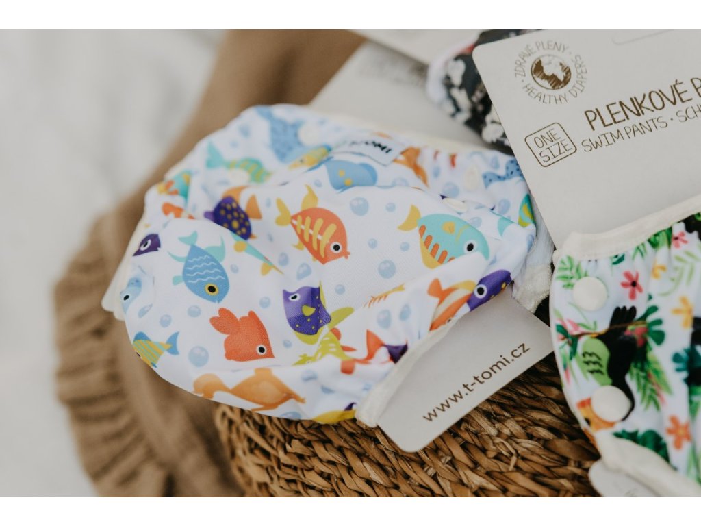 Plienkové plavky T-TOMI v modernom nadčasovom dizajne sú určené pre plávanie bábätiek cca od 5 do 15 kg. Tieto plavky sú vhodné ako pre novorodencov tak aj pre batoľatá a to vďaka jednoduchému systému patentiek, pomocou ktorých sa požadovaná veľkosť ľahko nastavuje. Vnútorná strana plienkových plaviek je vybavená praktickou sieťkou, ktorá zachytí prípadné "nehody" bábätka vo vode. Veľkou výhodou týchto plienkových plaviek T-TOMI je ich ekonomická stránka oproti jednorazovým plienkovým plavkám.vnútorná nepriepustná vrstva PUL