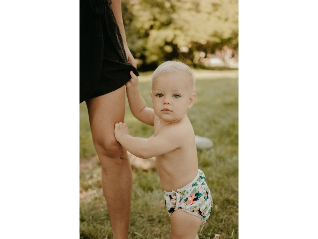 Plienkové plavky T-TOMI v modernom nadčasovom dizajne sú určené pre plávanie bábätiek cca od 5 do 15 kg. Tieto plavky sú vhodné ako pre novorodencov tak aj pre batoľatá a to vďaka jednoduchému systému patentiek, pomocou ktorých sa požadovaná veľkosť ľahko nastavuje. Vnútorná strana plienkových plaviek je vybavená praktickou sieťkou, ktorá zachytí prípadné "nehody" bábätka vo vode. Veľkou výhodou týchto plienkových plaviek T-TOMI je ich ekonomická stránka oproti jednorazovým plienkovým plavkám.vnútorná nepriepustná vrstva PUL