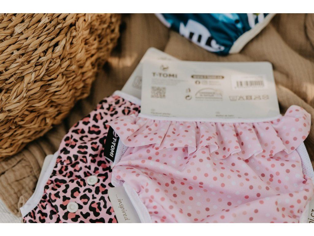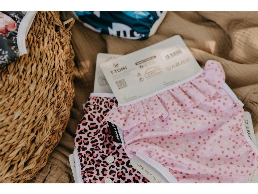 Plienkové plavky T-TOMI v modernom nadčasovom dizajne sú určené pre plávanie bábätiek cca od 5 do 15 kg. Tieto plavky sú vhodné ako pre novorodencov tak aj pre batoľatá a to vďaka jednoduchému systému patentiek, pomocou ktorých sa požadovaná veľkosť ľahko nastavuje. Vnútorná strana plienkových plaviek je vybavená praktickou sieťkou, ktorá zachytí prípadné "nehody" bábätka vo vode. Veľkou výhodou týchto plienkových plaviek T-TOMI je ich ekonomická stránka oproti jednorazovým plienkovým plavkám.vnútorná nepriepustná vrstva PUL