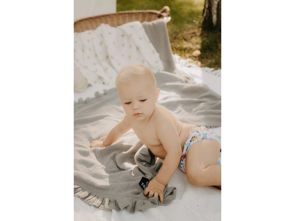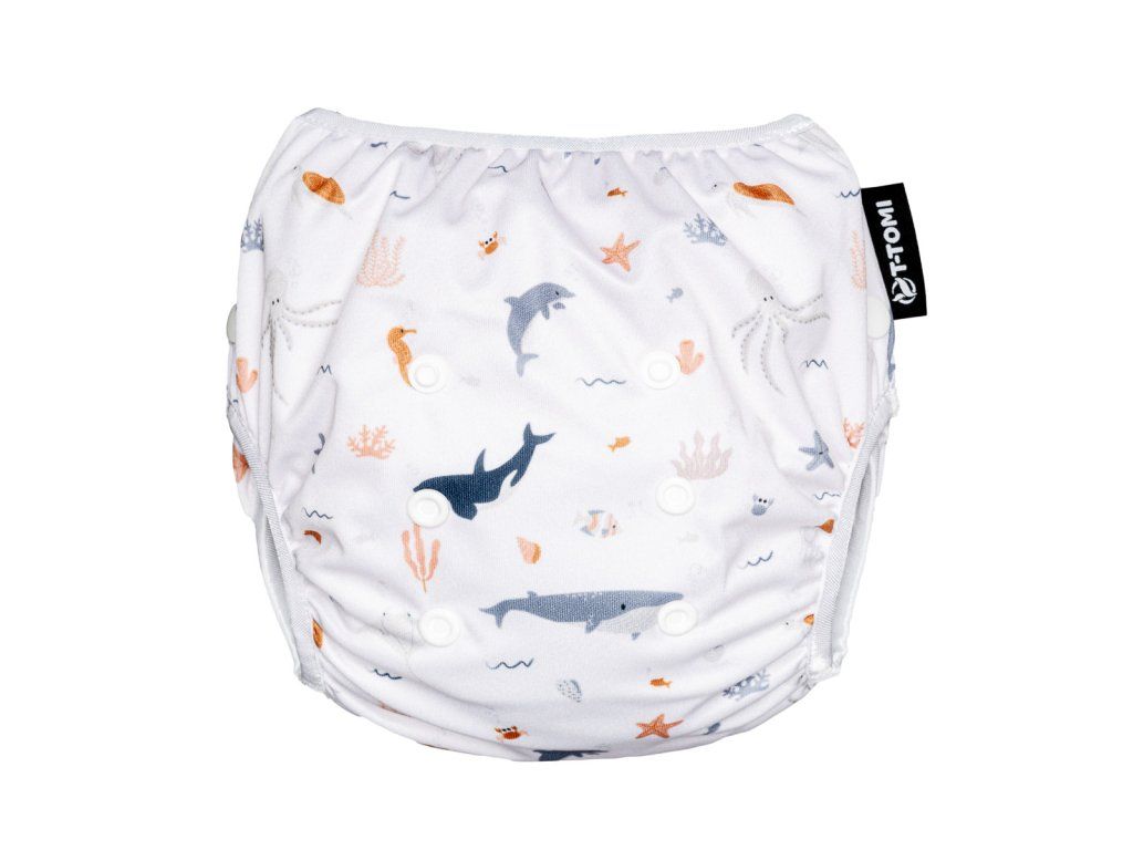 Plienkové plavky T-TOMI v modernom nadčasovom dizajne sú určené pre plávanie bábätiek cca od 5 do 15 kg. Tieto plavky sú vhodné ako pre novorodencov tak aj pre batoľatá a to vďaka jednoduchému systému patentiek, pomocou ktorých sa požadovaná veľkosť ľahko nastavuje. Vnútorná strana plienkových plaviek je vybavená praktickou sieťkou, ktorá zachytí prípadné "nehody" bábätka vo vode. Veľkou výhodou týchto plienkových plaviek T-TOMI je ich ekonomická stránka oproti jednorazovým plienkovým plavkám.vnútorná nepriepustná vrstva PUL