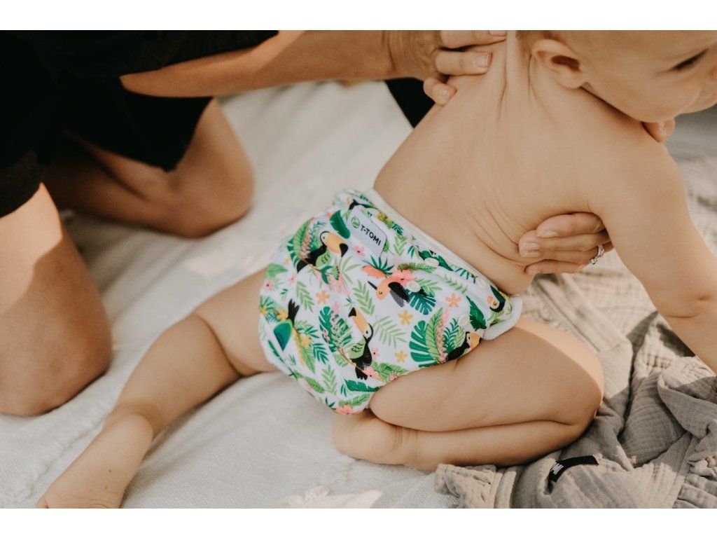 Plienkové plavky T-TOMI v modernom nadčasovom dizajne sú určené pre plávanie bábätiek cca od 5 do 15 kg. Tieto plavky sú vhodné ako pre novorodencov tak aj pre batoľatá a to vďaka jednoduchému systému patentiek, pomocou ktorých sa požadovaná veľkosť ľahko nastavuje. Vnútorná strana plienkových plaviek je vybavená praktickou sieťkou, ktorá zachytí prípadné "nehody" bábätka vo vode. Veľkou výhodou týchto plienkových plaviek T-TOMI je ich ekonomická stránka oproti jednorazovým plienkovým plavkám.vnútorná nepriepustná vrstva PUL