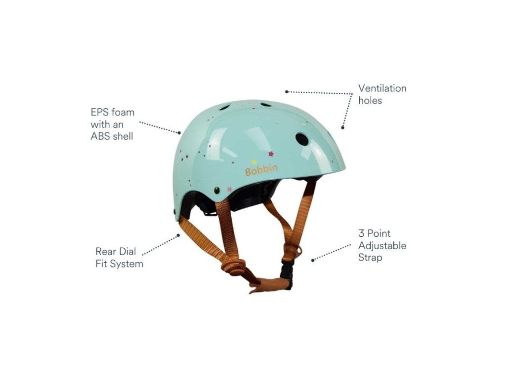 Táto jednoduchá helma so štíhlym profilom je dodávaná v škále vkusných farebných odtieňov, ktoré budú perfektne ladiť s vaším bicyklom Bobbin (alebo aj nie ;-). Plne sa prispôsobí obvodu vašej hlavy vďaka dial-fit systému v zadnej časti a pohodlnému polstrovanému remienku. Vďaka 11 ventilačným otvorom v helme bude vaša hlava môcť voľne dýchať. Helma je vyrobená z EPS peny s ABS plášťom a spĺňa štandard EN1078.