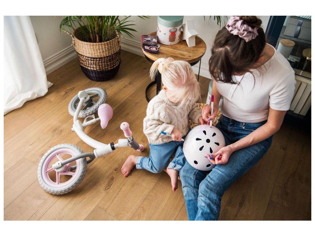 Každá helma MoMi MIMI sa stane jedinečným výtvorom, keď ju Vaše dieťa ozdobí vlastnými kresbami. Môže naň písať pastelkami a fixkami. Keď ho dizajn omrzí, môžete ho ľahko zmyť a vytvoriť nový!