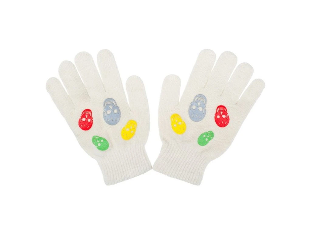 Nádherné detské zimné úpletové rukavičky New Baby. Rukavičky majú sťahovací pružný lem. Rukavičky zdobia obrázky farebných lebiek. Dĺžka je cca 18 cm. Zloženie: 85% polyester, 15% elastan.Dodatočné parametre