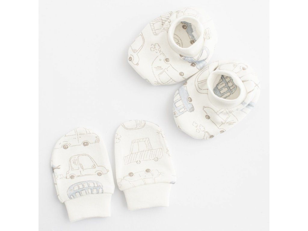 Krásny a praktický bavlnený set New Baby My Cars. Set sa skladá z capačiek a rukavičiek. Capačky a rukavičky sú zdobené potlačou autíčiek a majú sťahovacie manžetky. Zloženie: 100% bavlna. OEKO-TEX STANDARD 100.Dodatočné parametre