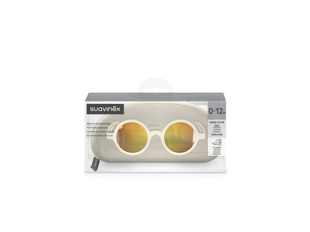 SUAVINEX | Detské okuliare - 0/12 mesiacov polarizované s puzdrom 2024 - sivé guľaté
