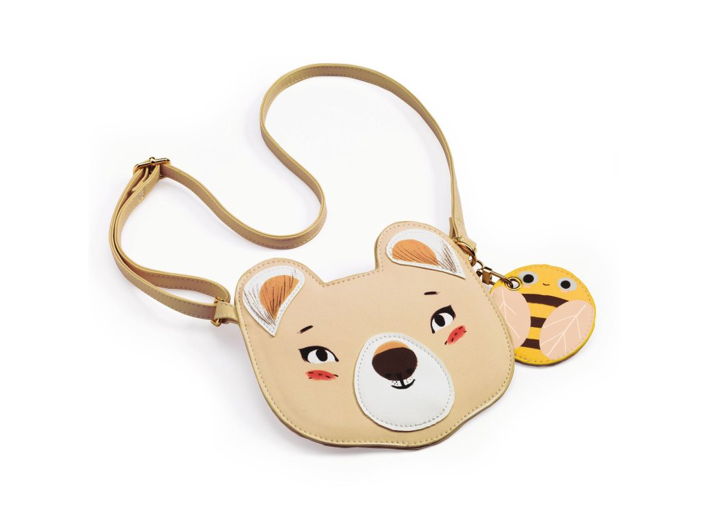 Detská crossbody kabelka Medvedík Na prechádzku aj na výlet: detská crossbody kabelka Djeco s motívom medvedíkaDetská crossbody kabelka Medvedík od značky Djeco je praktická detská kabelka cez plece, ktorá udrží drobnosti pekne pohromade. Hodí sa na vreckovky, sponky, malé figúrky či „poklad“ z ihriska.Kabelka sa zatvára na zips a má nastaviteľný popruh cca 54–104 cm. Bonusom je zipsové mini puzdro (peňaženka) na drobnosti.Rýchly prehľad typ: detská crossbody kabelka zapínanie: zips popruh: nastaviteľný popruh cca 54–104 cm rozmery: cca 14 × 16 cm bonus: zipsové mini puzdro (peňaženka) na drobnostiTechnické parametre značka: Djeco materiál: imitácia kože, polyesterová podšívkaDodatočné parametre