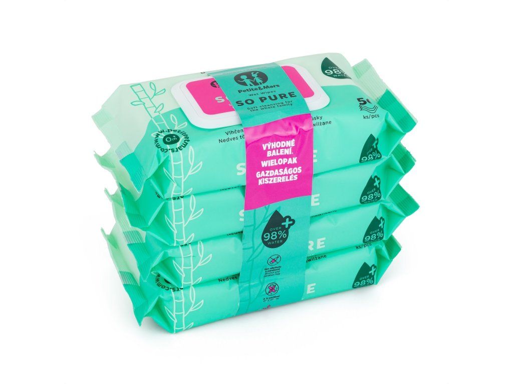 4x PETITE&MARS Obrúsky vlhčené SO PURE bambusové bioodbúrateľné 56 ks