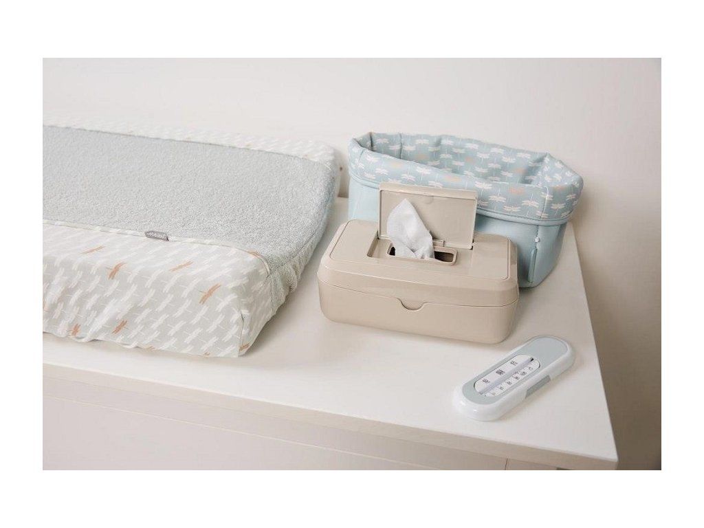 Univerzálny box na vlhčené obrúsky v modernom dizajne s ochranou proti vyschnutiu. Krásny doplnok na prebaľovaciu komodu. Je ľahko uzatvárateľný, aby sa predišlo vysychaniu obrúskov. Box je možné otvoriť jednou rukou. Špeciálne otváranie sa ďalej postará, že ďalší obrúsok budete môcť bez námahy vytiahnuť von a ihneď použiť.