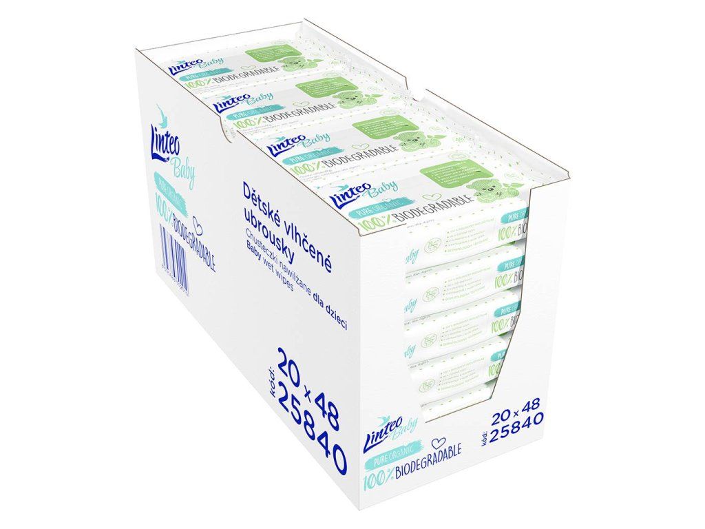 Linteo Baby BIODEGRADABLE sú 100% rozložiteľné, detské čistiace vlhčené obrúsky, ktoré vďaka svojmu šetrnému zloženiu a starostlivo vybraným ingredienciám zastanú funkciu spoľahlivého hygienického pomocníka, ktorý má za úlohu šetrne a predovšetkým bezpečne sa starať o pokožku detí už od narodenia. Vlhčené obrúsky Linteo Baby biodegradable obsahujú 98% čistenej vody. Neobsahujú alkohol ani pridané parfumy. Zvyšné dve percentá tvorí vysoko kvalitný extrakt z aloe vera. Ich šetrné zloženie zaručuje kvalitnú a účinnú starostlivosť pre deti už od narodenia.