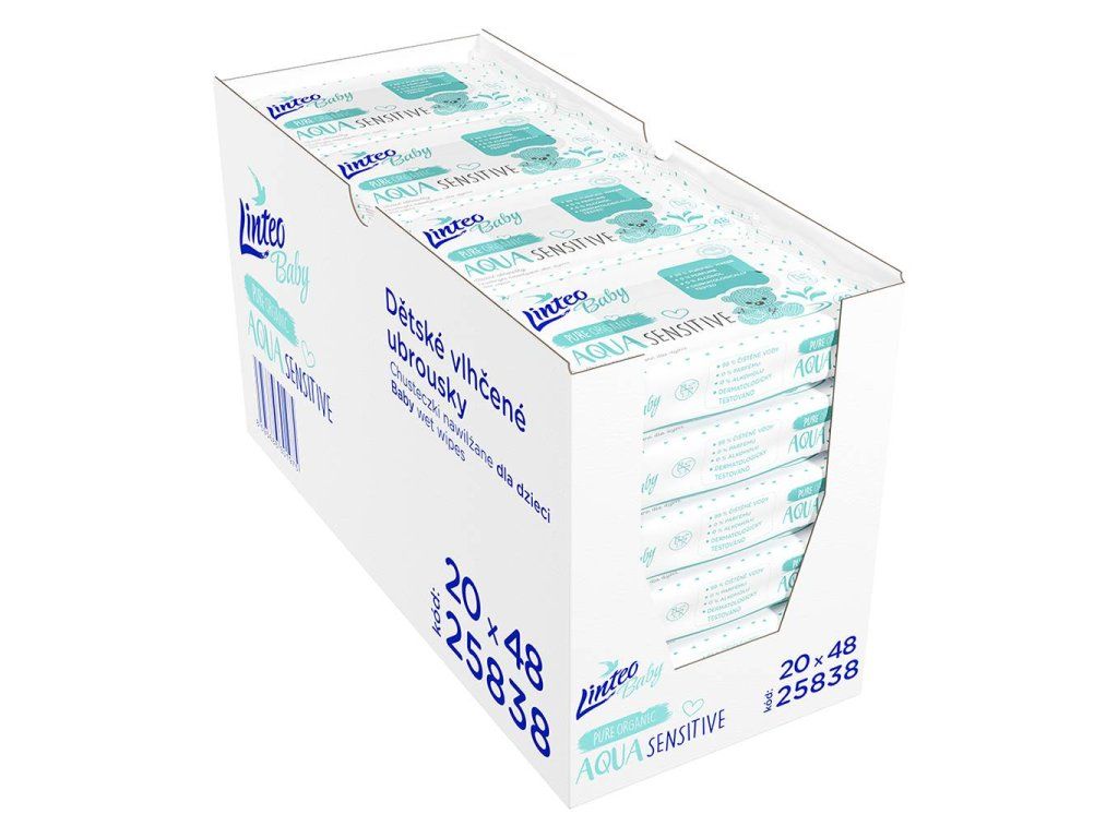 Detské vlhčené obrúsky Linteo Baby AQUA SENSITIVE 48 ks - 45313